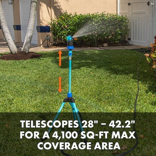 - TRIPOD SPRINKLER TELESCOPES: From 28 to 42.2 for a coverage area of up to 4,100 sq ft