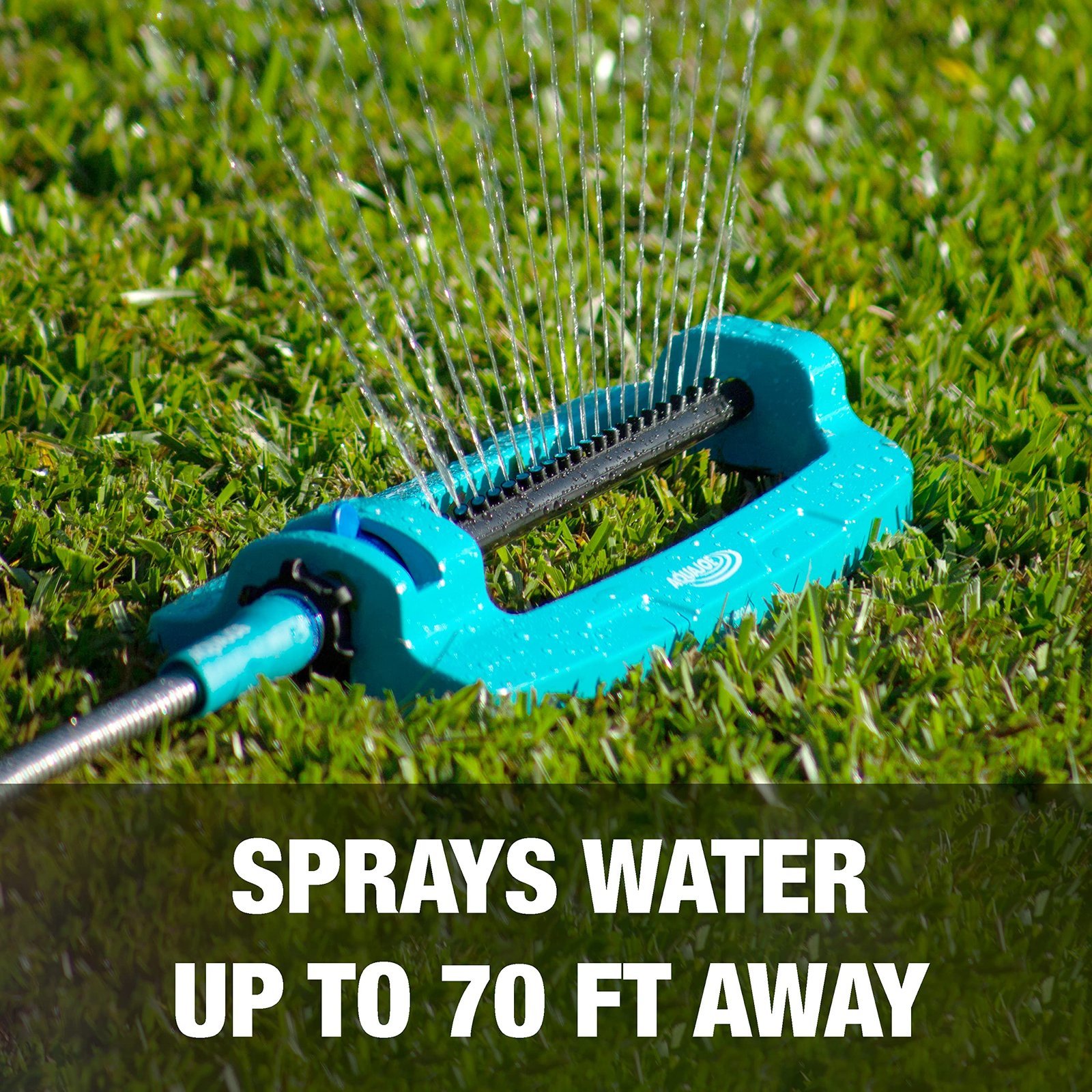 WATER YOUR WAY! Keep your grass green and lawn lush with the SJI-OMS20 Indestructible Metal Base Oscillating Sprinkler from AQUA JOE, by SUN JOE. With AQUA JOE’s completely customizable coverage patterns, you’ll have the control you need to make your home the envy of the entire neighborhood. Just slide and select your range settings to reach every corner of your yard – from the smallest lot to the largest lawn! The 20 sturdy, plastic nozzles provide even water flow and precise dispersal — up to 4, 400 sq. ft. — while the water-powered turbo drive motor ensures optimal coverage. And the extra-long, indestructible metal base provides enhanced stability and durability for tough outdoor use, plus AQUA JOE’s durable, metal fittings provide a secure, leak- resistant connection to your standard garden hose. And the built-in clean-out tool quickly clears clogs to help keeps your nozzles clean for continuous, reliable operation, season after season. When it comes to watering, don’t stop the flow — Go With Joe! SJI-OMS20 Indestructible Metal Base Oscillating Sprinkler from AQUA JOE. GET EQUIPPED.