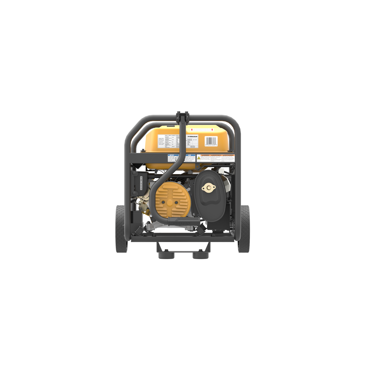 The FIRMAN Volt Lock automatic voltage regulator ensures clean, consistent power output from the FIRMAN Power Stream alternator. For the ultimate in portability the P03608 includes a wheel kit featuring 8â never-flat wheels and a high leverage single folding handle with ergonomic grip. Pertinent information is at your fingertips with our 4-in-1 data minder measuring Volts, Hertz, Hours and a low oil indicator. The durable, compact tubular roll cage frame design is built for years of use. Just add gas!