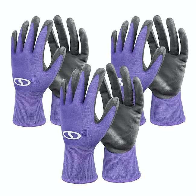 Restored Sun Joe GGNP-S3-PRP Reusable Nitrile-Palm Gloves | Tactile | Washable | One Size Fits Most | Set of 3 (Purple) (Refurbished)