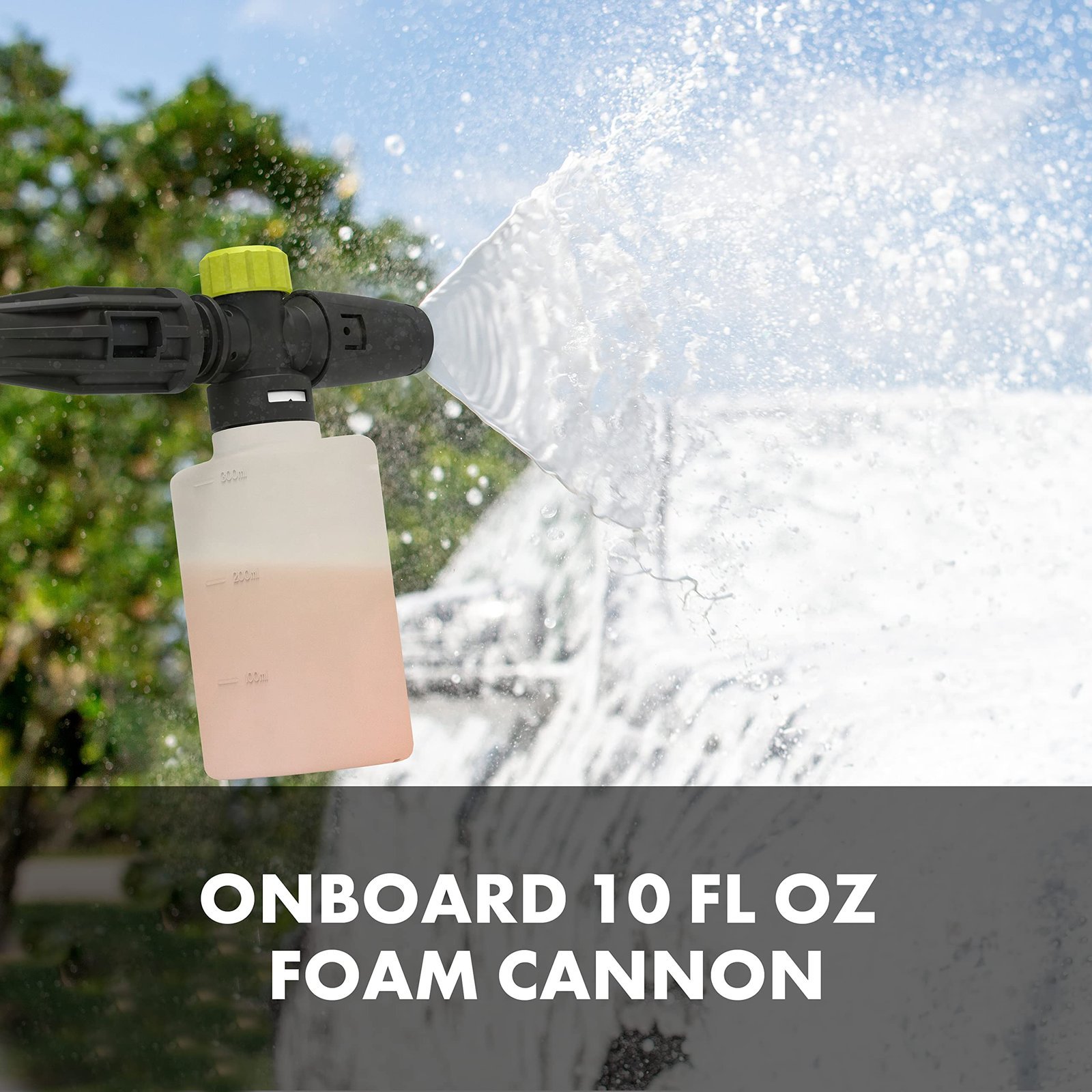 - DETERGENT TANK: Onboard 10 fl oz foam cannon gives your cleaning blast a boost