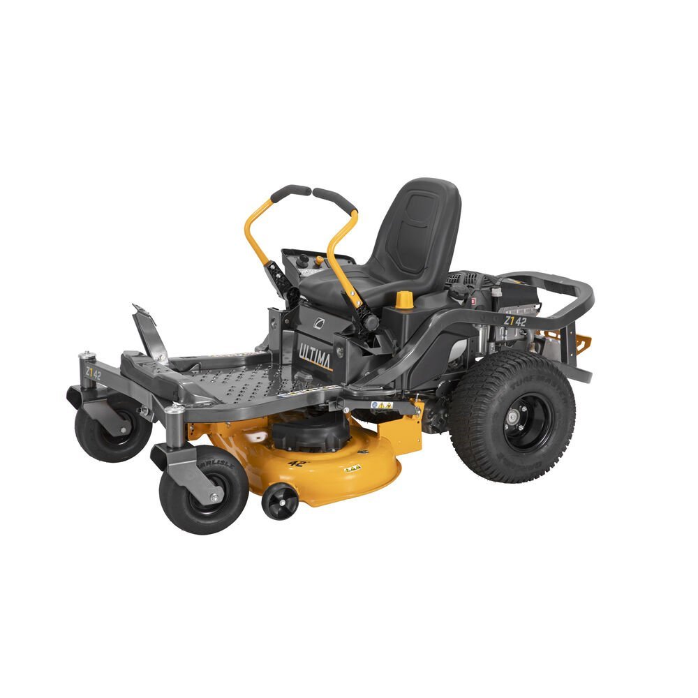 - Efficiency**Mowing identical grass conditions using a 42-inch Ultima Series zero-turn mower at a speed of 7 MPH vs. a Cub Cadet® 42-inch lawn tractor at a speed of 5 MPH.